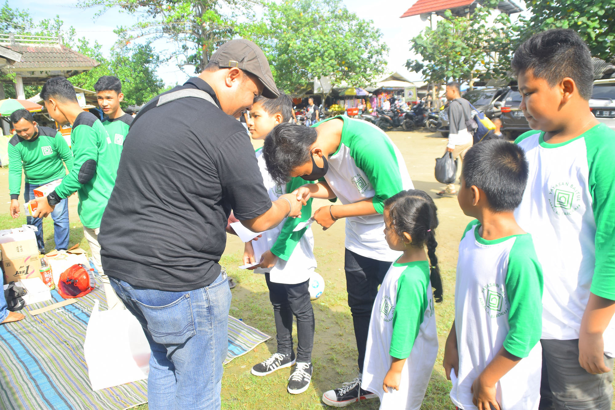 Santunan yatim dan Dhuafa yang dihadiri oleh seratus Yatim dan Dhuafa di lingkungan Yayasan Baitul Amal Albarokah